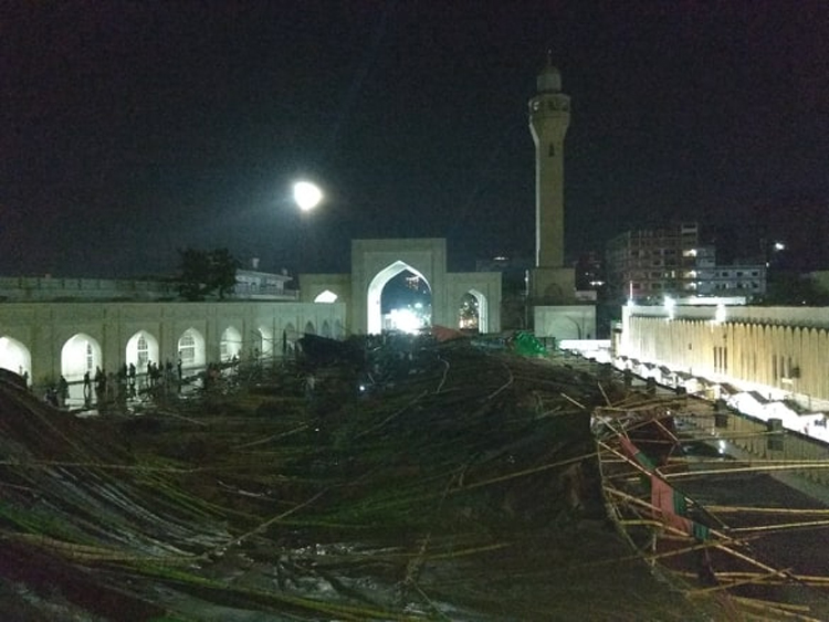 রাজধানীর হঠাৎ ঝড়-বৃষ্টিতে বায়তুল মোকাররম মসজিদের দক্ষিণ গেটের প্যান্ডেল ভেঙে পড়ে নামাজরত অবস্থায় এক মুসল্লির মৃত্যু হয়েছে। একজন পুলিশসহ আহত হয়েছেন অন্তত ১৫ জন। নিহতের নাম শফিকুল ইসলাম (৩৬)।